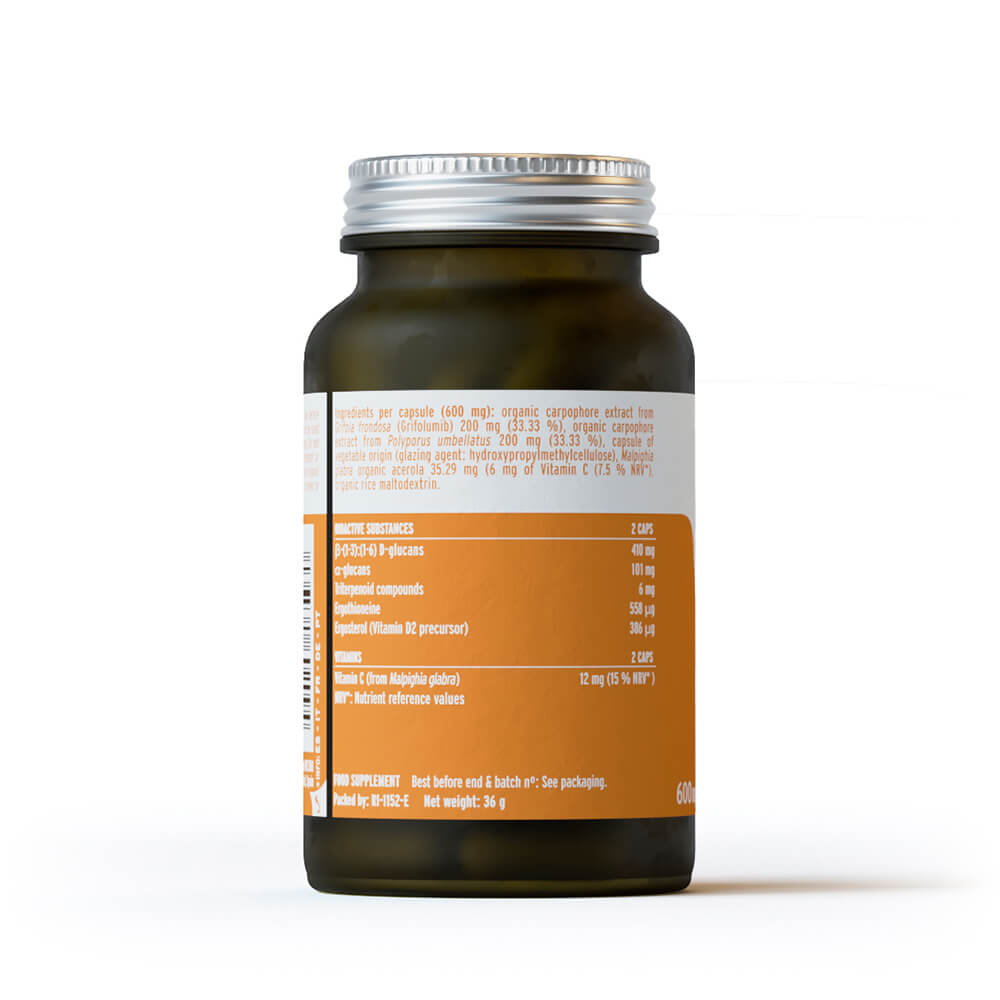 Suplemento Detox natural con extractos ecológicos de Maitake y Polyporus que ayudan en la detoxificación y el drenaje natural.El producto Hifas-Detox contiene las sustancias bioactivas de los hongos medicinales Maitake y Polyporus. Entre ellas destacan ß-(1-3),(1-6) D-glucanos y α-glucanos, Triterpenoides, Ergotioneína, Ergosterol (precursor de Vitamina D2). Además, contiene vitamina C natural(Malpighia glabra) para mejorar la biodisponibilidad de los extractos y así potenciar su acción.