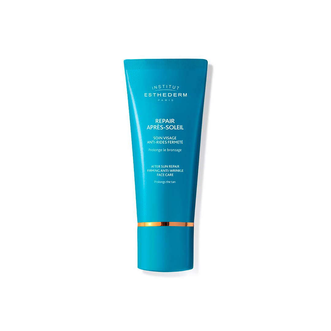 Cada noche tras la exposición solar, aplica la Crema After Sun Repair Facial Institut Esthederm en rostro, cuello y escote.